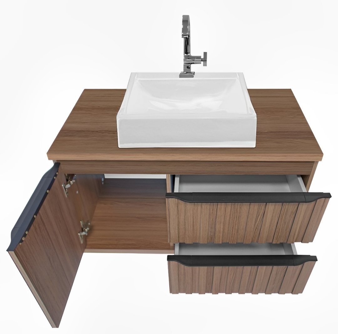 AdicionarO Kit Cecília da Fabribam é a escolha perfeita para transformar seu banheiro em um espaço moderno e sofisticado. Com design ripado em PVC antirrisco e impermeável, o conjunto oferece beleza e durabilidade. O gabinete suspenso conta com gavetas com corrediças telescópicas e portas com dobradiças soft close, proporcionando praticidade. A espelheira com portas espelhadas, nicho e prateleiras internas maximiza a organização. A cuba quadrada em mármore sintético adiciona requinte, com puxadores em alumínio preto fosco. Este kit une estilo, funcionalidade e alta qualidade para um banheiro perfeito.