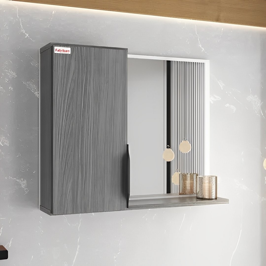 Praticidade: Armário e espelheira projetados para manter tudo organizado e ao alcance.