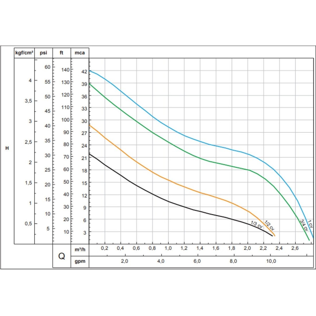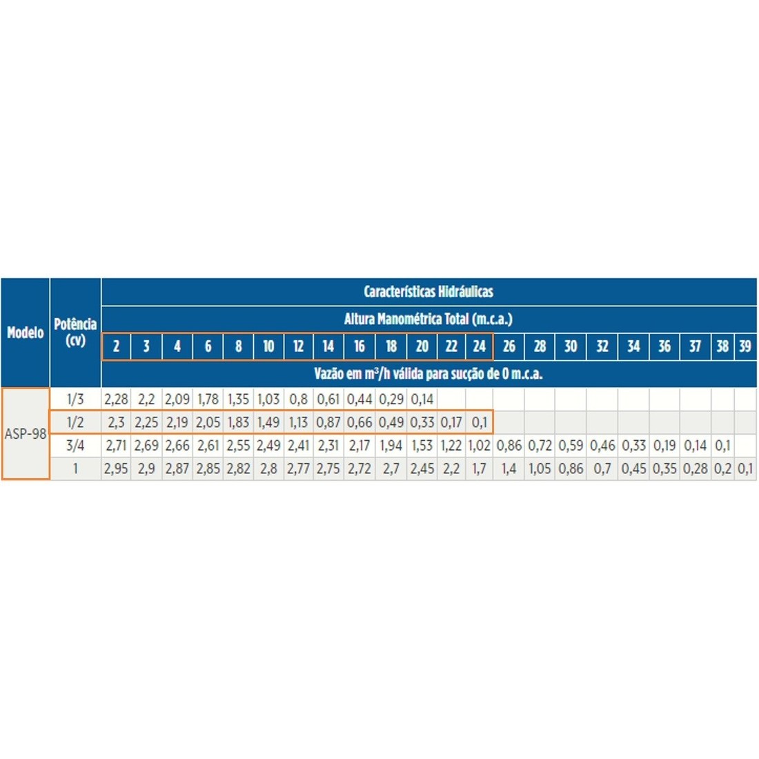 - Vazão máxima: 2,28 m³/h para 2 m.c.a;