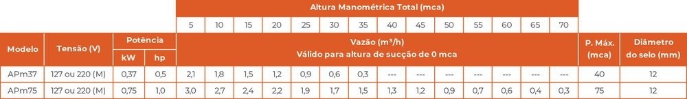 - Sucção máxima: 8 mca